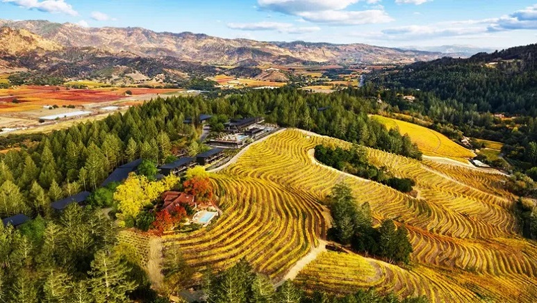 - Set on 118 acres of forested ridgeline near downtown Calistoga, the property is designed to capture the essence of the region with sweeping vineyard views, organic dining concepts, and wellness-focused experiences.